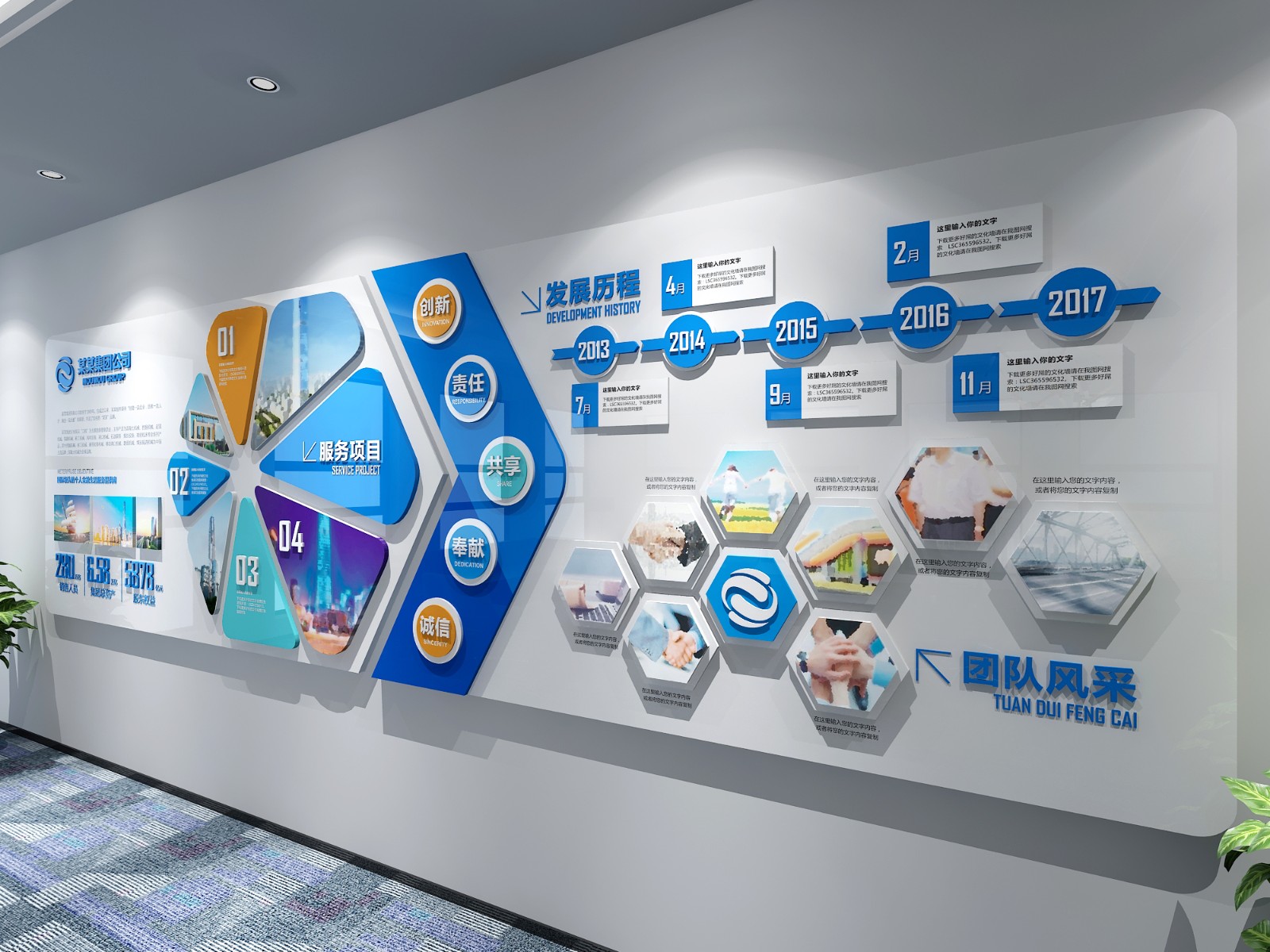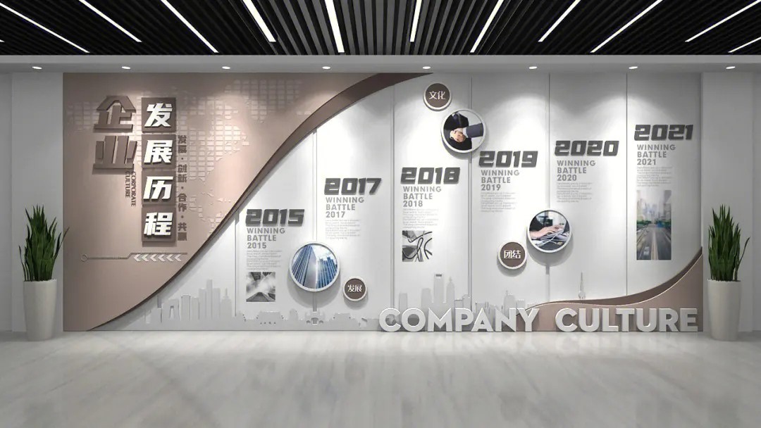 公司發展歷程文化墻的設計是一件非常精細的事情,通過我們的畫面展示來傳播公司的一種經營理念和運營模式,從而來向大家介紹公司的發展史以及經歷過的事件。內容設計是需要用心的,接下來一起看一下,公司發展歷程文化墻設計一般如何設計內容。