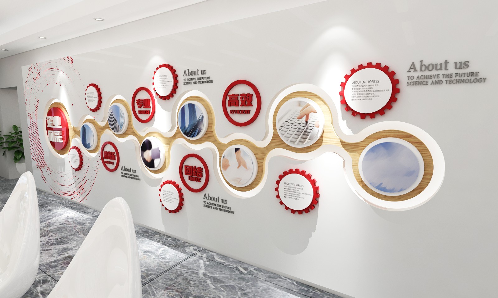 文化墻就是一面墻,它所蘊含的理念和展示的內容不同,從而讓企業以這種環保又時尚的氛圍而存在,同樣也是在展現企業文化墻的一面旗幟,宣傳品牌的重要性與環境的改善起到了很大的作用,也會企業文化增添了不少光輝的成就。其實文化墻是公司的文化理念的一部分,同樣在宣揚著公司信念和品牌文化的傳播,當然員工在潛移默化中會受到企業品牌文化的影響,提高員工工作的積極性,增強團隊的凝聚力從而使整個氛圍呈現出積極向上樂觀開朗的氣氛。